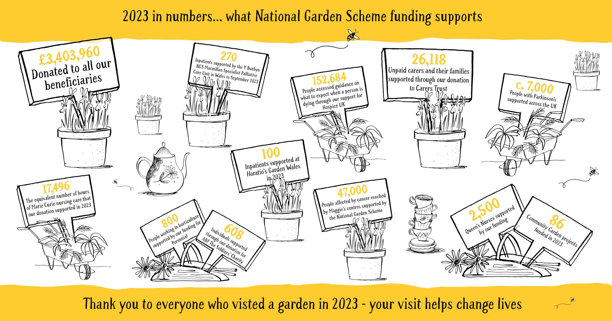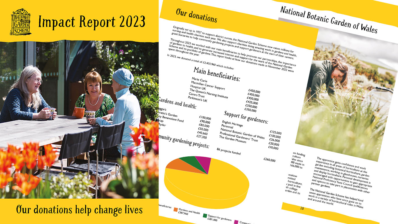 2023 proved to be a record year for the National Garden Scheme with £3,403,960 donated to the charity’s beneficiaries. This represents a superlative achievement by the garden owners and county team volunteers who together worked tirelessly to host open days at 3,389 gardens across the year.