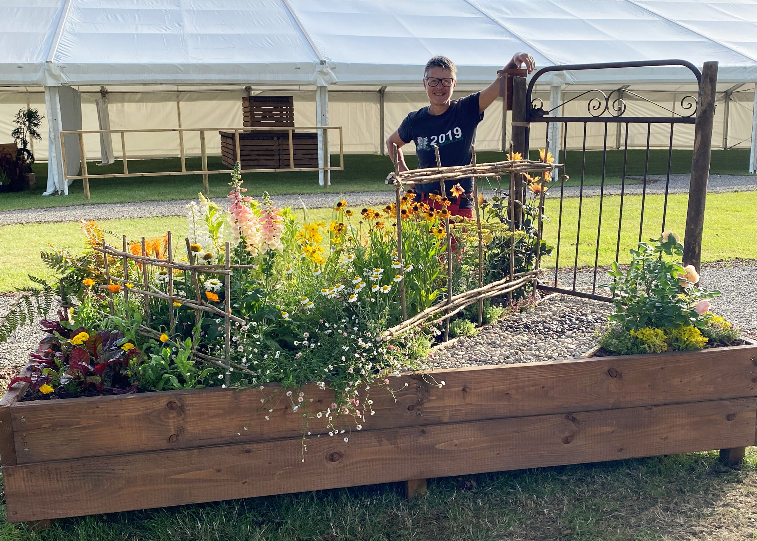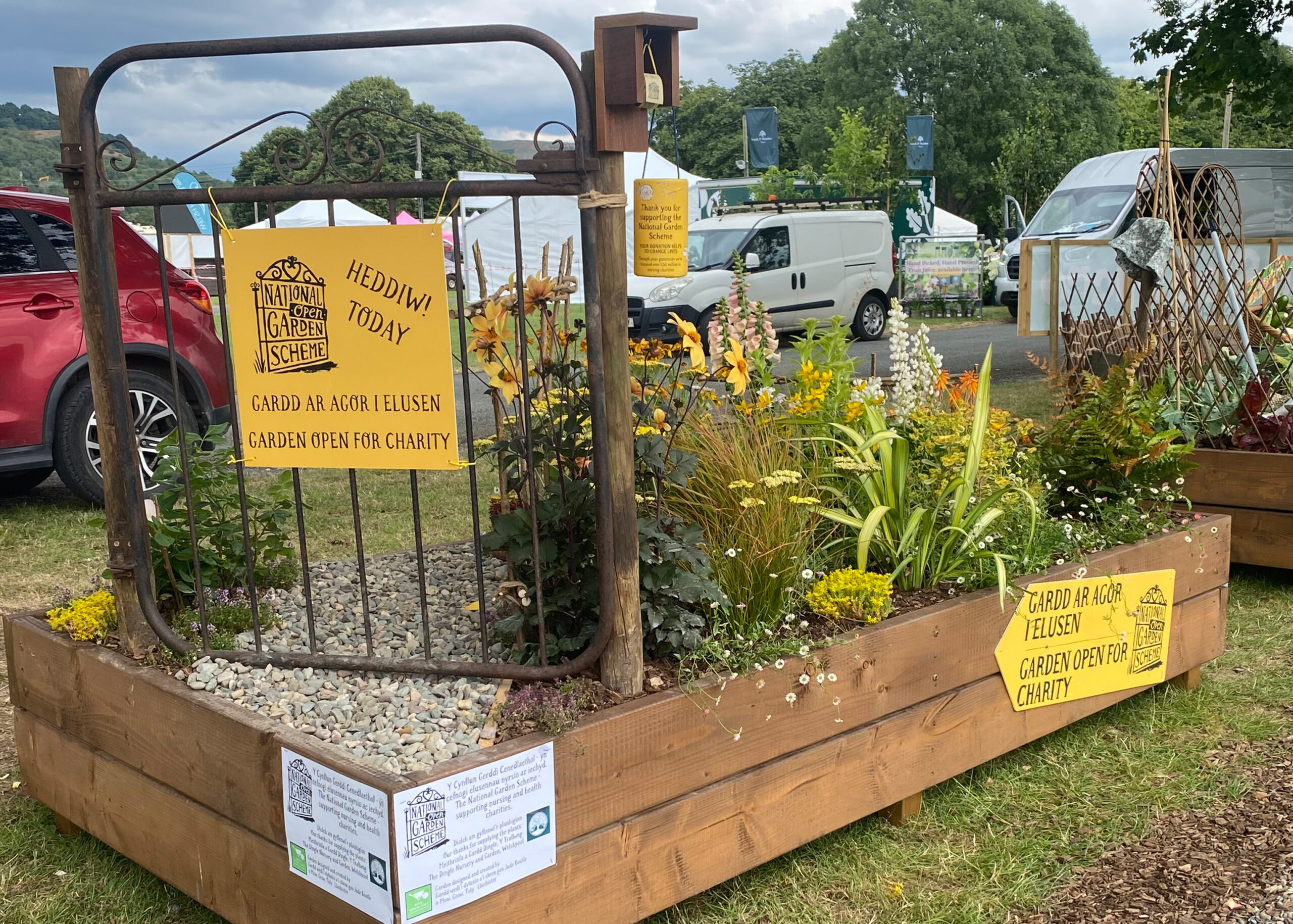Having a presence at regional shows is an important part of raising awareness of the work of the National Garden Scheme and this year’s micro show garden at the Royal Welsh Agricultural Show (RWAS) does just that. Based on the theme of ‘Support’ the garden, designed and created by Jude Boutle of Mow, Grow, Tidy horticultural gardening services of Llanbister – who is also our volunteer treasurer for Powys – the garden embodies much of what the National Garden Scheme stands for.