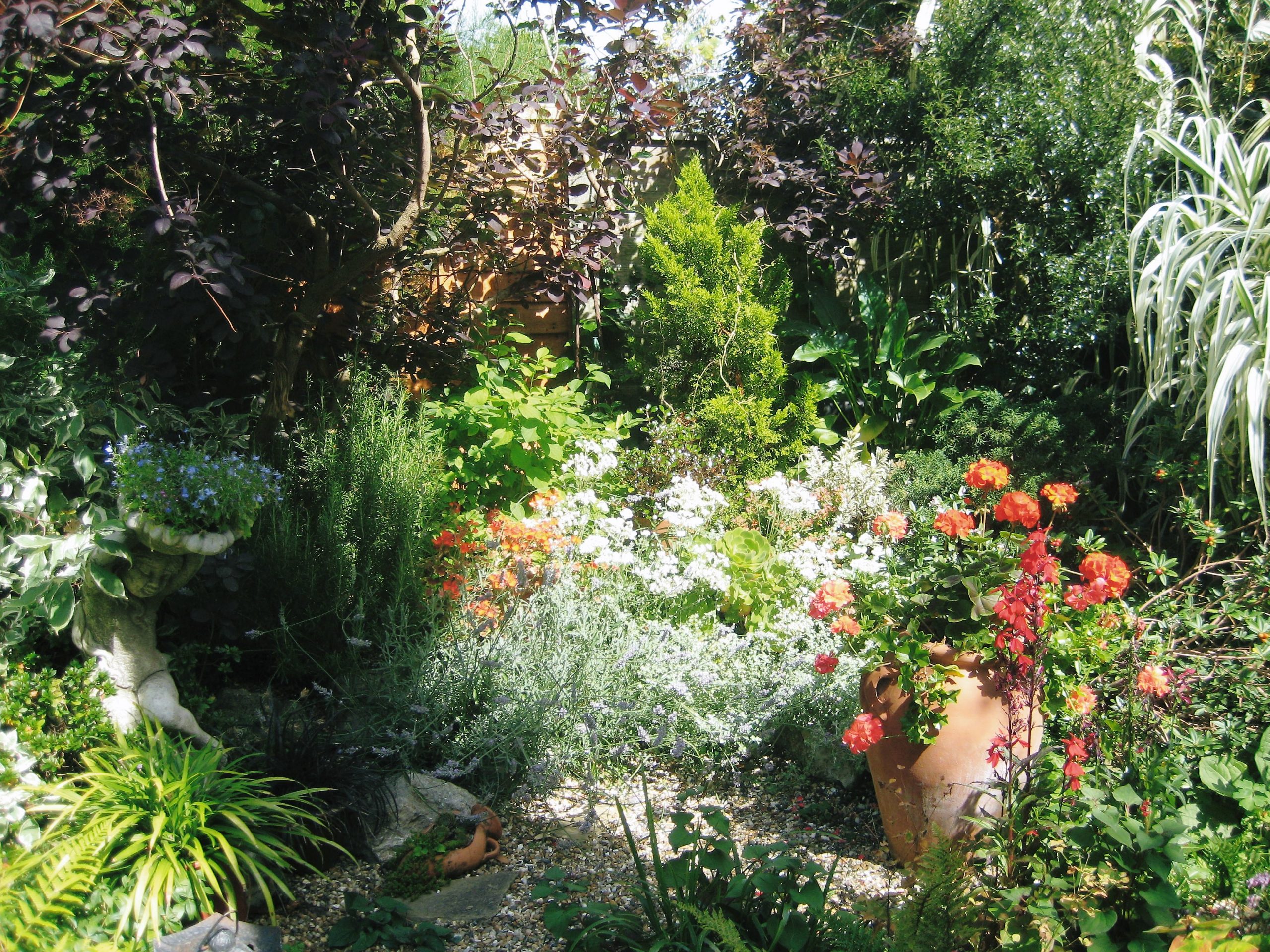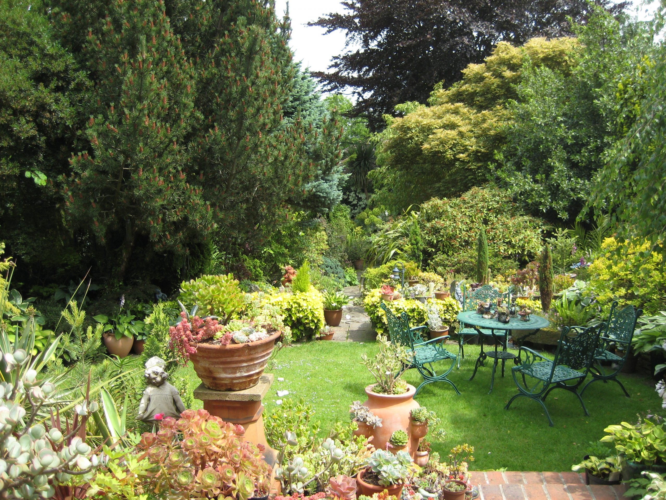 Don’t be fooled by its size, this beautiful and well established town garden is full of wonderful planting from mature trees to a luscious collection of hostas and tiny succulents, there’s a peaceful stream, pond and water features. A meandering path leads you through the garden past restful water to shady seating areas while the top terrace is filled with exotic plants and colourful annuals in baskets and containers. Even the front garden is verdant with planting – what was once a lawn has been transformed.