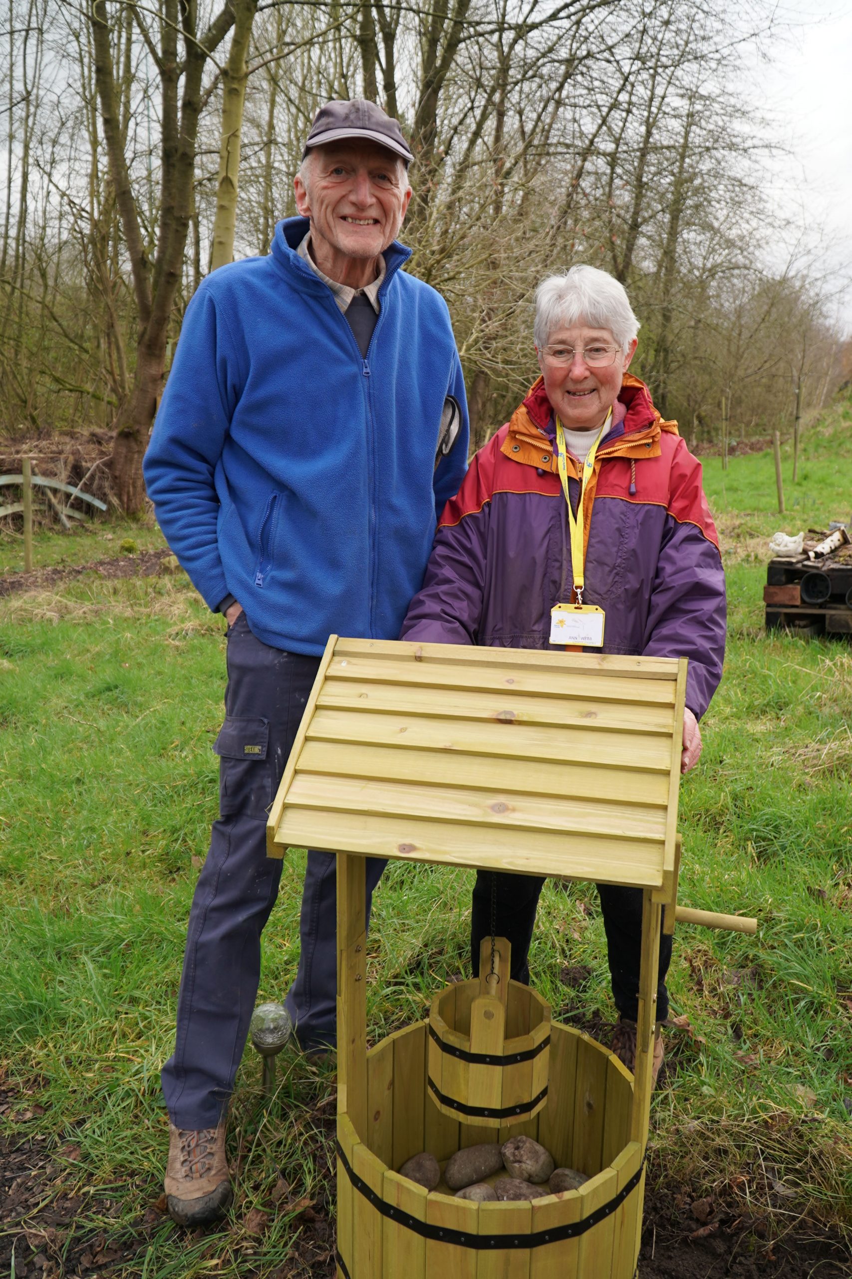 It’s not what I expected. Orderly, calm and, even in February, the thoughtful layout is punctuated with colour and interest. We kept walking. The path sloped gently away from the building toward a wilder area, there’s a pond, bug hotels and a Fairy Garden for bereaved children to spend time and leave their hopes and wishes. A new wishing well had just been added, a gift from one of the garden volunteers.
