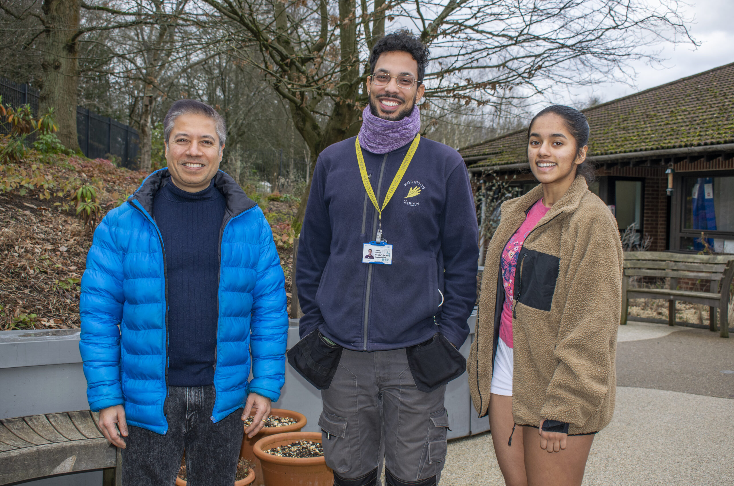 - Pia with her dad (left) and Head Gardener Ashley Edwards