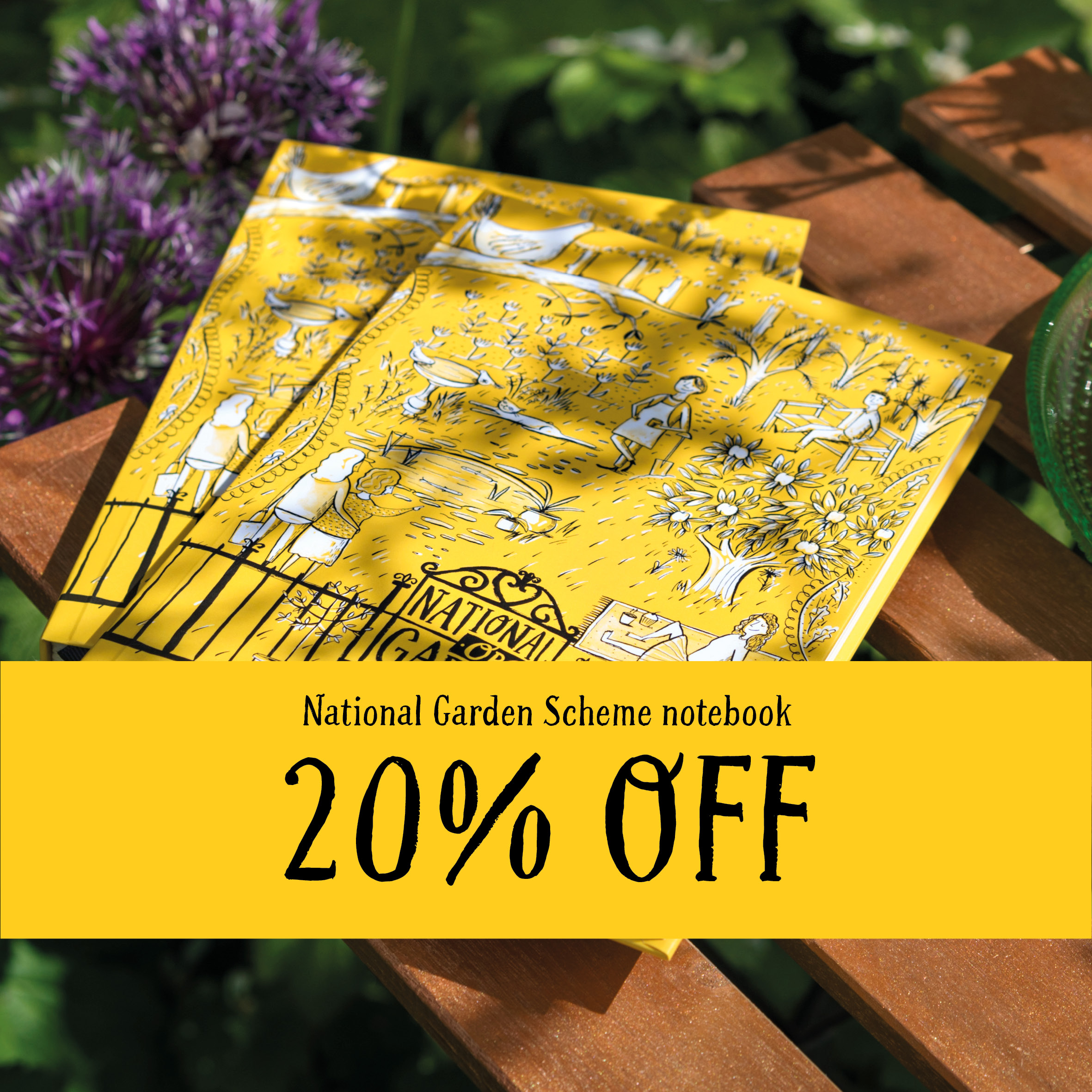 This hardback A5 notebook has a beautifully illustrated cover in the National Garden Scheme signature yellow. It has a grey ribbon marker and contains 96 pages of 100gsm lined paper.