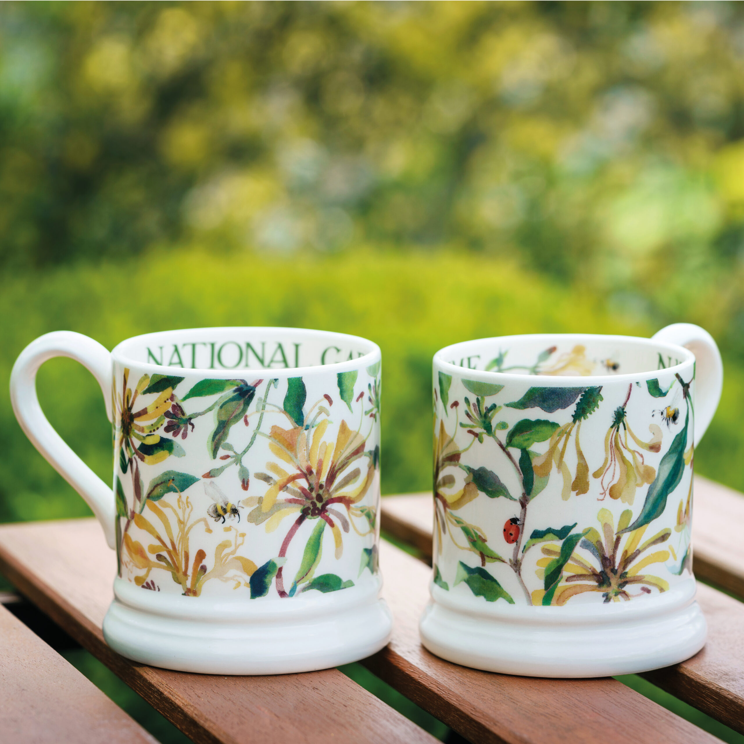 It’s always a collaboration. I knew that it had to have yellow in it to connect it to the National Garden Scheme brand and I wanted to play into that. Yellow always has such a sparkle to it and as soon as the dark days of winter begins, I am so grateful to see a touch of yellow, first from the winter jasmine flowers and as spring approaches from the cheerful yellow daffodils. The National Garden Scheme honeysuckle design brought so brilliantly to life by artist Matthew Rice, was inspired by the woodland planting of their beautiful RHS Chelsea Flower Show 2024 show garden. I’ve always loved the freedom and grace of the honeysuckle’s climbing habitat, its twirling tendrils and the incredible perfume of the flowers. A mug is the hardest thing to design because it’s such an awkward space, but it was really important to me that Matthew captured the curly feel of the tendrils to give it a sense of space and movement. I love the design we created.