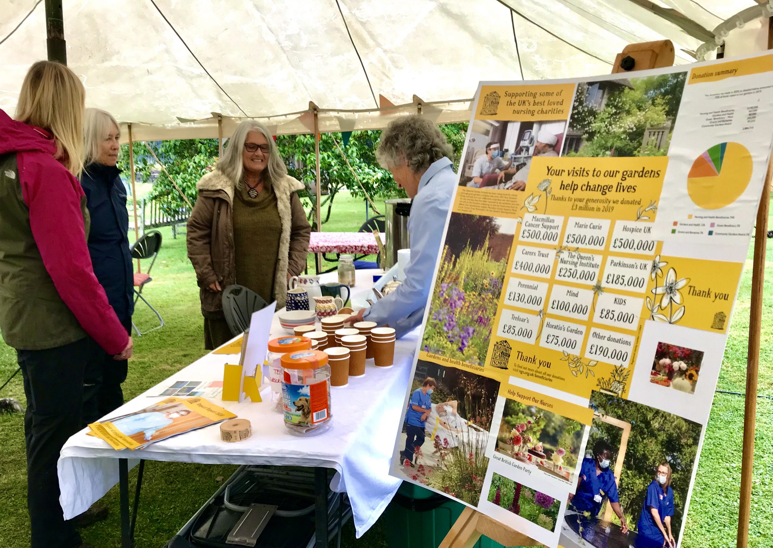The day itself did not look promising – torrential rain hampered preparations, but people started to arrive and in true British style did not let that dampen their spirits. Everyone was busy chatting, eating delicious cake and enjoying each other’s company. They even chose to explore the garden despite the awful weather!