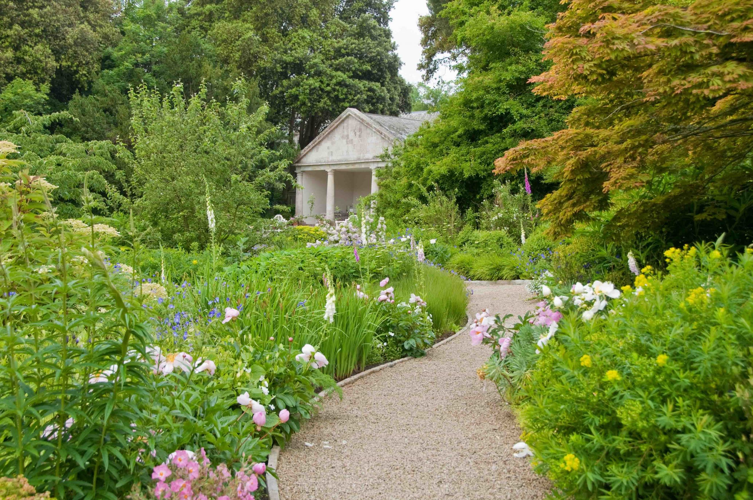 The main garden to the south of the house includes large sweeping borders filled with grasses and perennials that embrace the Temple which offers views across the lawns, lake and surrounding countryside. Behind the courtyard and Clock Tower lies the walled garden, where deep herbaceous beds follow the walls and, in the centre, surrounded by a young orchard, is a yew-hedged garden planted around a millstone fountain. Varied planting within the extensive borders mix prairie style modern planting with traditional English cottage style, all underpinned with structural shrub planting. Elsewhere, there are wildflower meadows, woodland walks, lakes, a kitchen garden and wilder areas all with glimpses of the Jurassic coast. The garden and estate continue to be developed with new areas being added, together with massed bulb and tree planting.