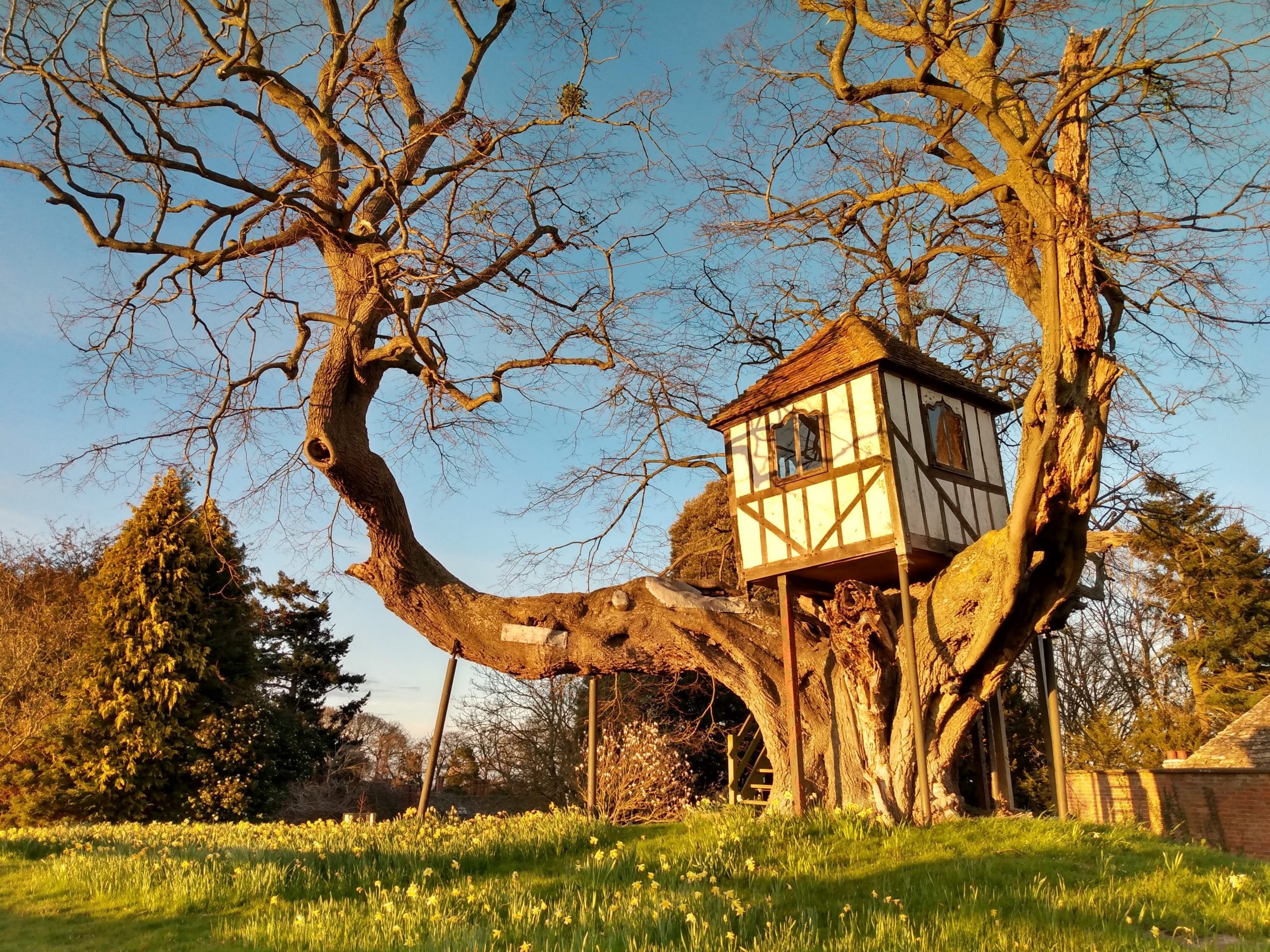 The grounds feature one of the world’s oldest treehouses; dating from the late 1600s it was first mentioned in 1692, given a new image with ornate plasterwork in 1760 and restored in 1980. Situated in a large leaved lime tree (Tilia Platyphyllos) it is constructed in the same half-timbered style as Pitchford Hall. Queen Victoria recorded in her diary that she watched a visiting pack of foxhounds from the treehouse during her visit to Pitchford Hall as a young princess in 1832.