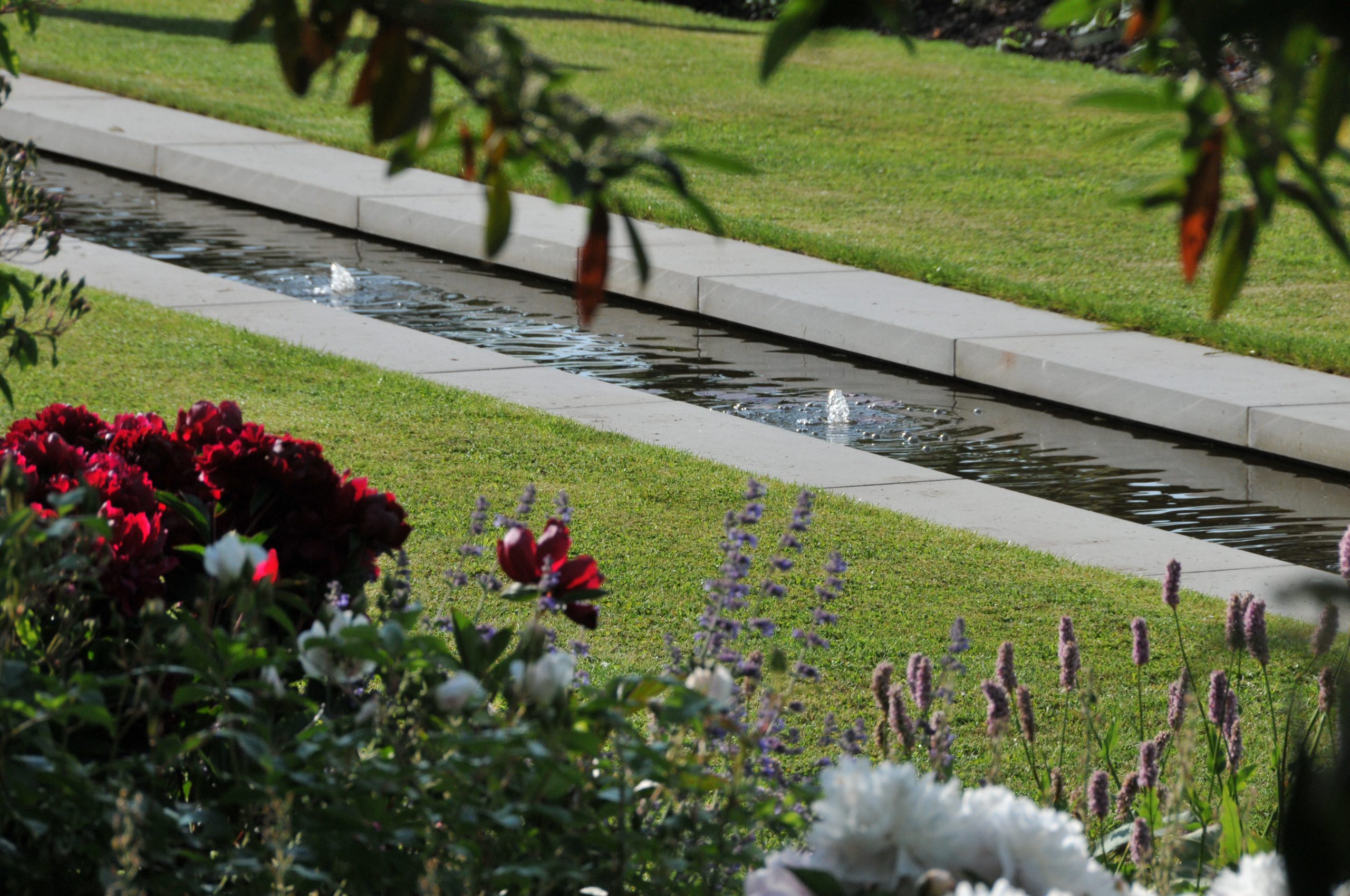 Rockfield Park dates from the 17th century and the extensive gardens are made up of lawns and a ha-ha overlooking parkland and rural Monmouthshire, formal gardens, including herbaceous borders, a glorious rose garden, pergolas and ponds, a kitchen garden and greenhouse and a steep water garden featuring ancient acers leading to lawns on the banks of the River Monnow.