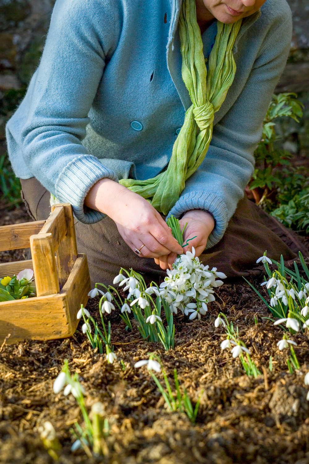 - Sarah picking snowdrops