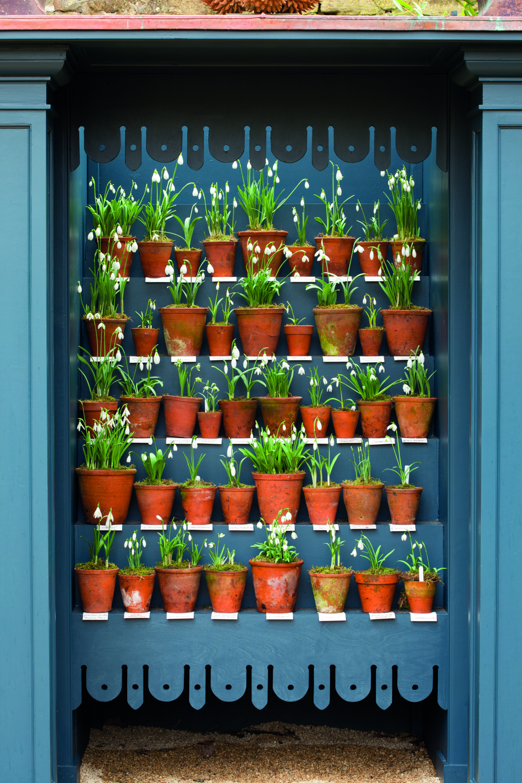 - Snowdrops in terracotta pots displayed in the snowdrop theatre