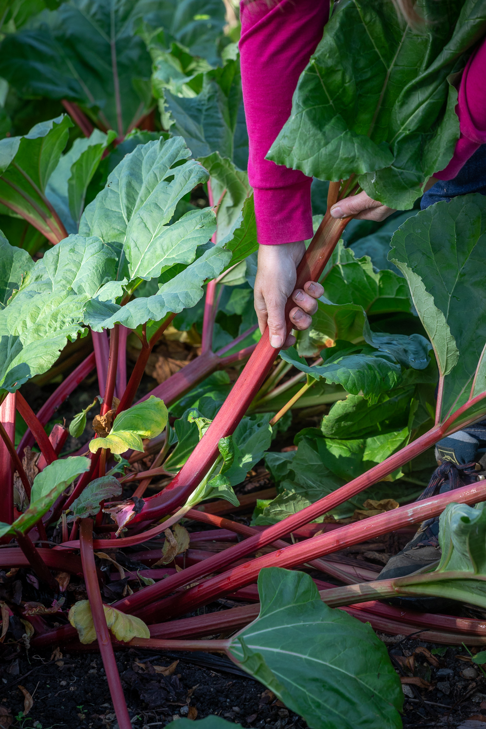 - Harvesting rhubarb by pulling