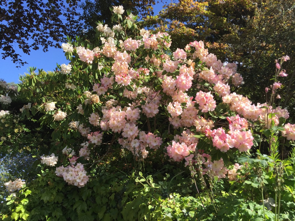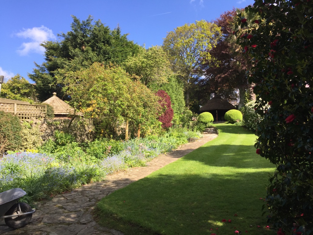 The one-acre garden at St Merryn was very neglected on the arrival of the present owners but has been renovated, developed and matured over the last forty-five years, and is an ongoing process. Planted to sustain interest throughout the year using foliage as well as flowers along with scent and colour-themed borders. There are many sheltered seating areas for relaxation. Owner Ros Bradford, an artist, has planned to the garden so that it leads the visitor visually round the garden using the winding paths, leading to the summerhouse (built and initially thatched by the owners), the ponds – the sculptural bonfire – the hens and the swimming pool (also self-built). Earth removed in the construction of the studio/gallery has been used to construct the grassy knoll. It is a garden made for relaxation and enjoyment!