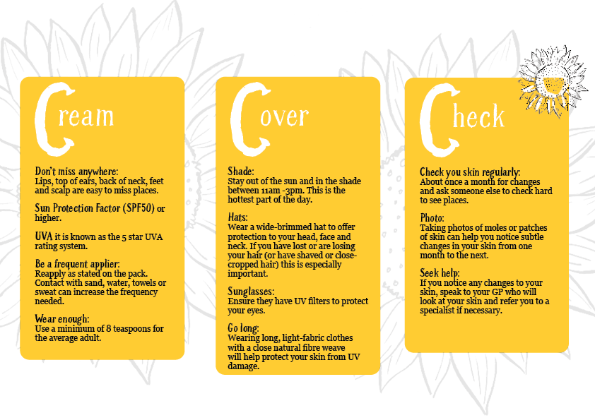If someone is having or has had cancer their skin may be more sensitive to the sun. Some treatments like radiotherapy can cause sun sensitivity for a few years after treatment has finished. It’s particularly important that people with a history of cancer to follow these top tips to reduce their risk of skin cancers.