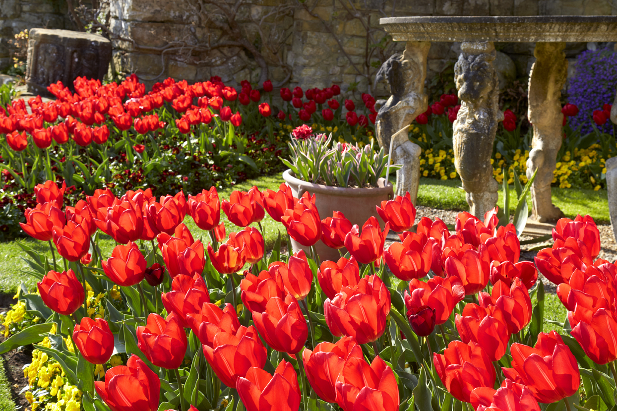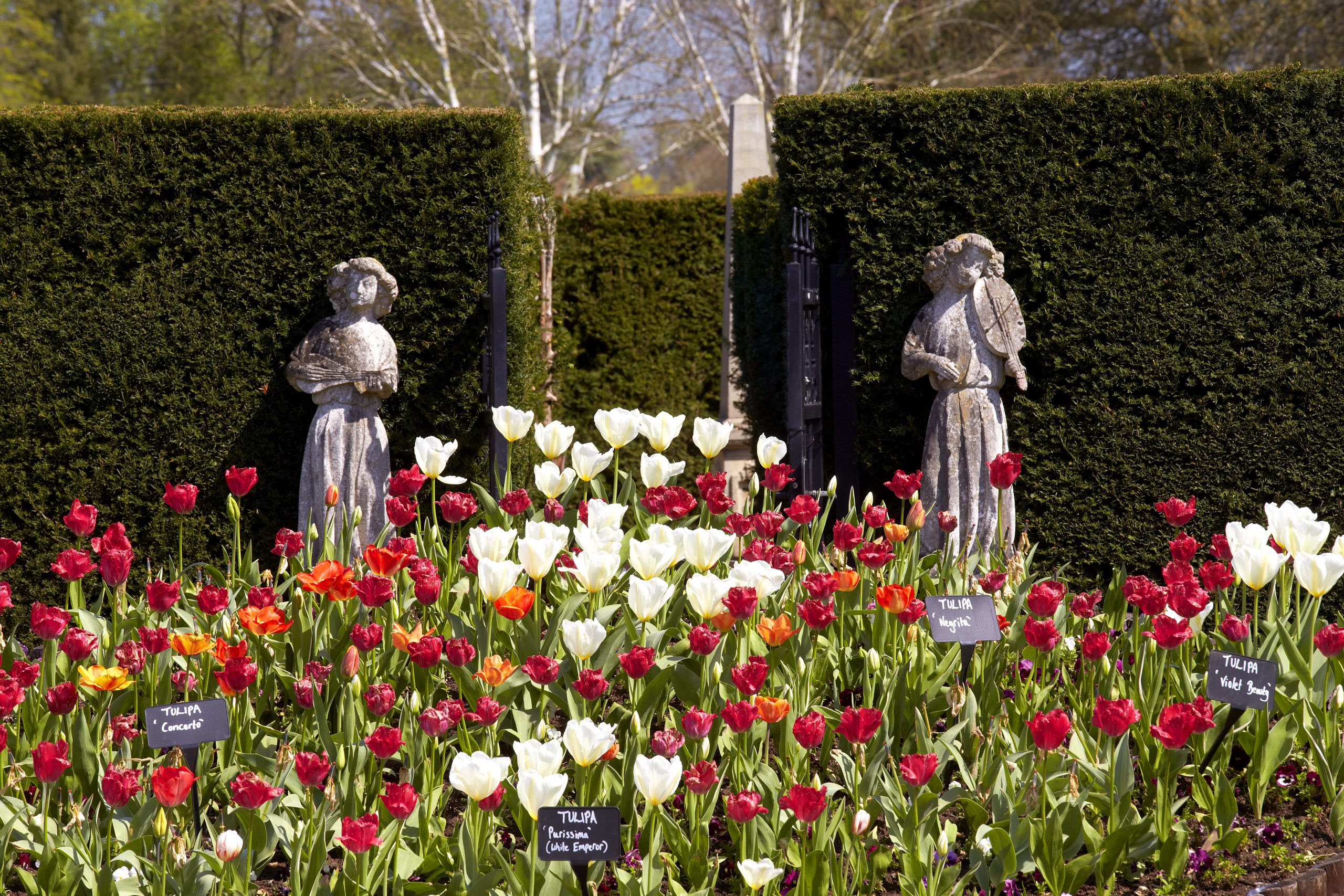 In spring the gardens give way to a spectacular tulip display. Walls are covered in camellias and as are the rhododendrons are in full bloom, as are azaleas and wisteria.