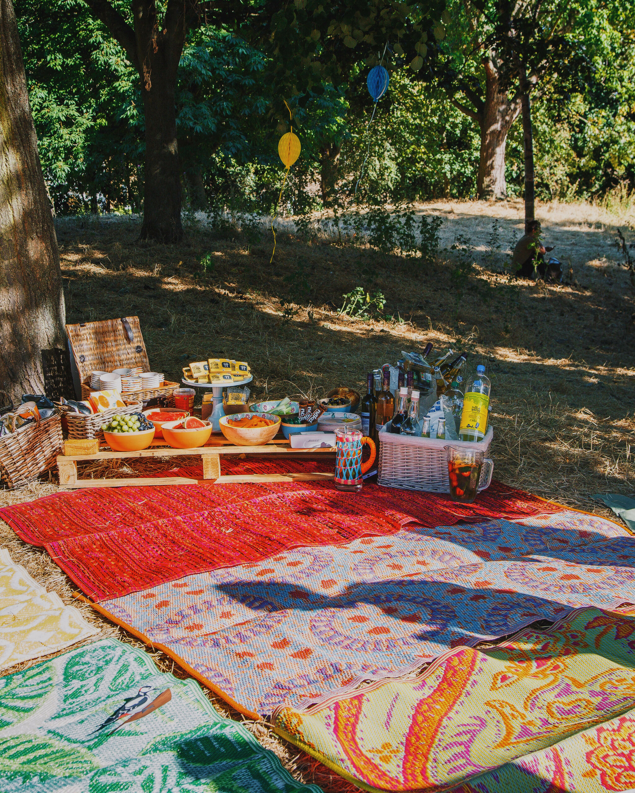 We asked the team to donate prior to heading off to the park to enjoy some cold drinks and treats under the shade of trees. We had set up an area complete with a colourful array of our outdoor rugs on the ground and honeycomb decorations hanging from the trees.