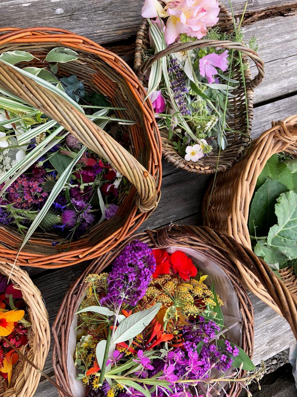 In our wheel-chair friendly raised beds we have planted perennial chives, chards, nasturtium, calendula, kale, courgettes, lettuce agretti (Chinese edible for salads) mange tout, borage for the bees, coriander, heritage beans, Hokkaido winter squash and we have an annual cut flower corner so that visitors can take their own posy home.