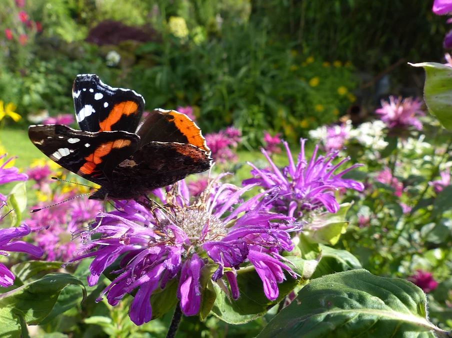 - Red Admiral feeding on Monarda nectar
