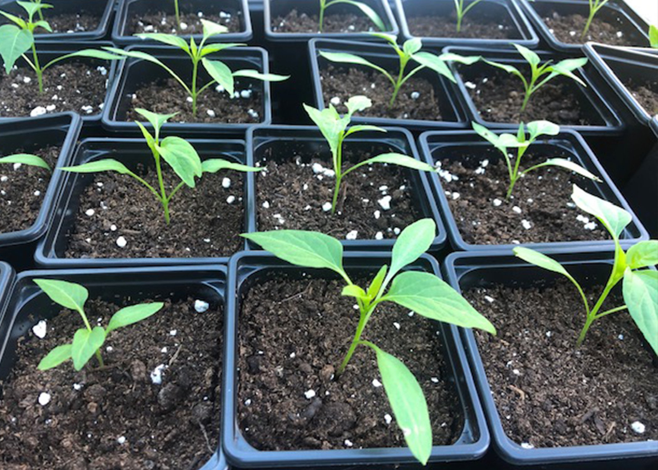 As the seeds germinate and grow it’s important not to let them grow too quickly. Again, in order to slow their growth, move them into a cooler place. Once each seedling gets its next set of leaves it’s time for a move into a new single pot of compost.