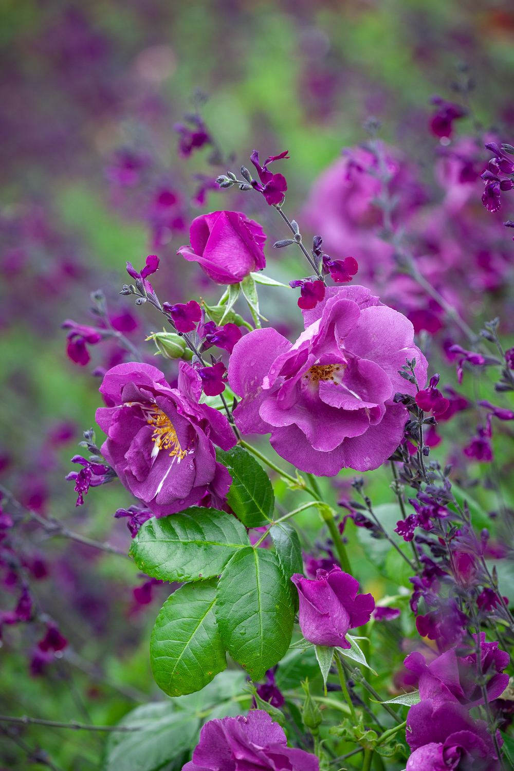 Salvias and roses