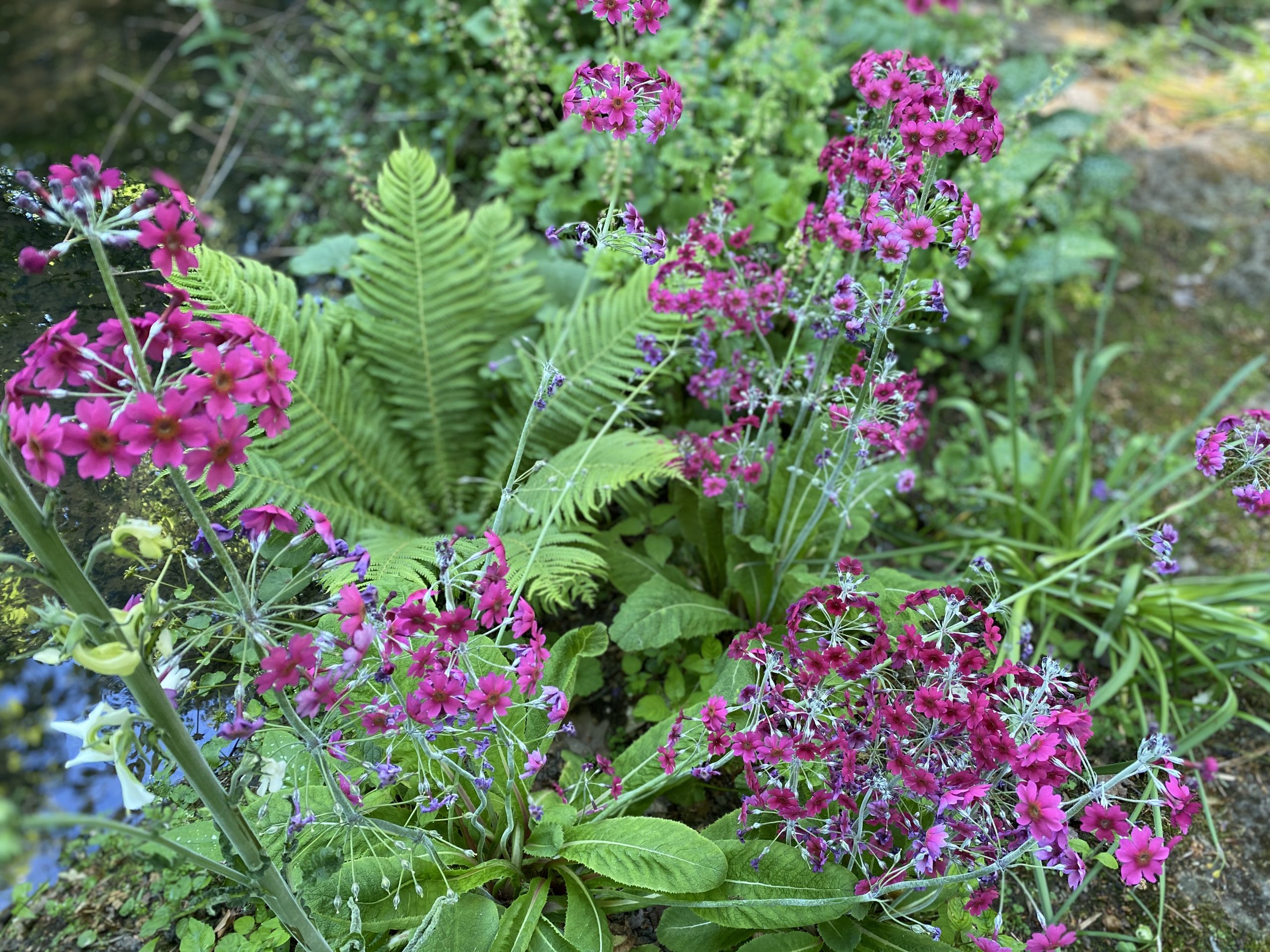 The unique Water Garden by Gertrude Jekyll (1911) comprises a succession of small ponds is crossed by stone paths and bridges, and planted with many damp-loving plants that she supplied. They include ferns, leucojum, gaulteria, pulmonaria, trachystemon, peltaphyllum, rodgersia, and caltha, to which more recent re-planting has added newer varieties of hosta, hemoracallis hellebores and astilbe among others.