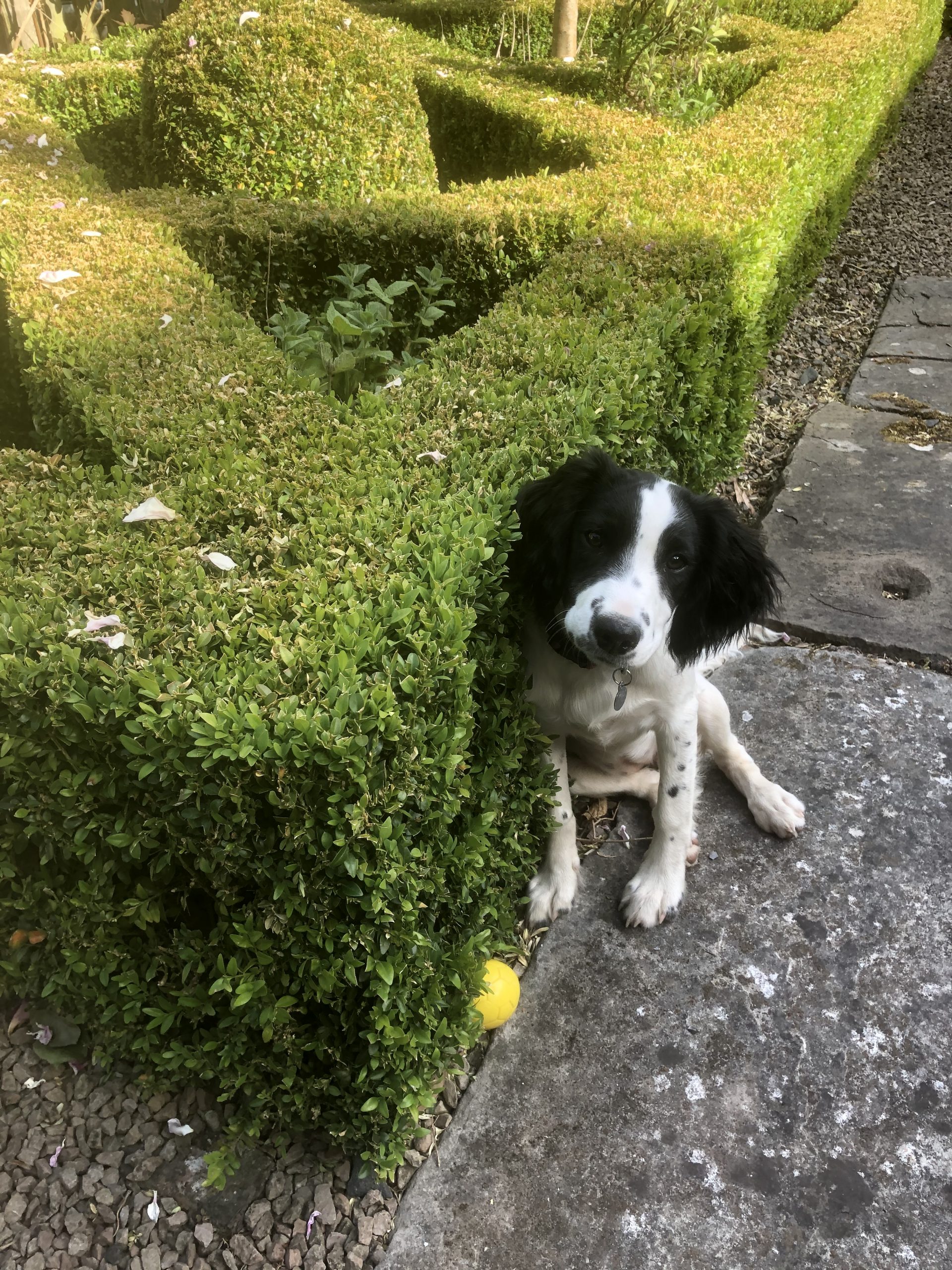For the Garden Owners, the bane of the garden is also its strength. The garden is on such heavy clay a gardening fork can barely penetrate it, but the roses adore it. There have been many lessons learned with this gardening challenge, with Rachel losing many plants and trees over the years as she learns the lay of the land. Their second, and perhaps bigger, challenge is their new springer spaniel puppy, who joined the family three months ago. “Tilly is an expert hole digger, with not a shred of respect for a neat box hedge…”