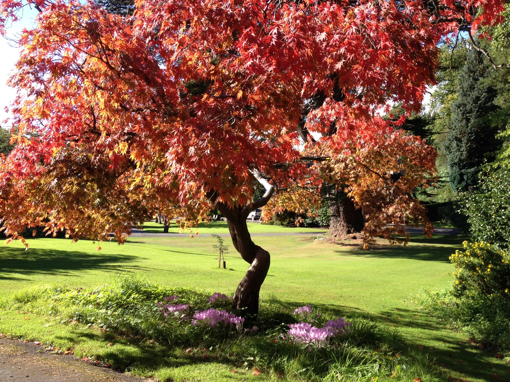 The Gliffaes garden and arboretum has many rare and beautiful shrubs and trees. Looked after by the same family for four generations, it extends to 33 acres, some of it parkland, with an ornamental pond and roughly 7 acres of lawns. A long tradition of tree planting was started in 1820 and thanks to these early plantings there are some magnificent specimen trees including Giant Sequoias (below), huge Cedars and a spectacular Acer Palmatum, which is over 100 hundred years old. Autumn is naturally one of the best times of year to see many of these trees in their splendour.