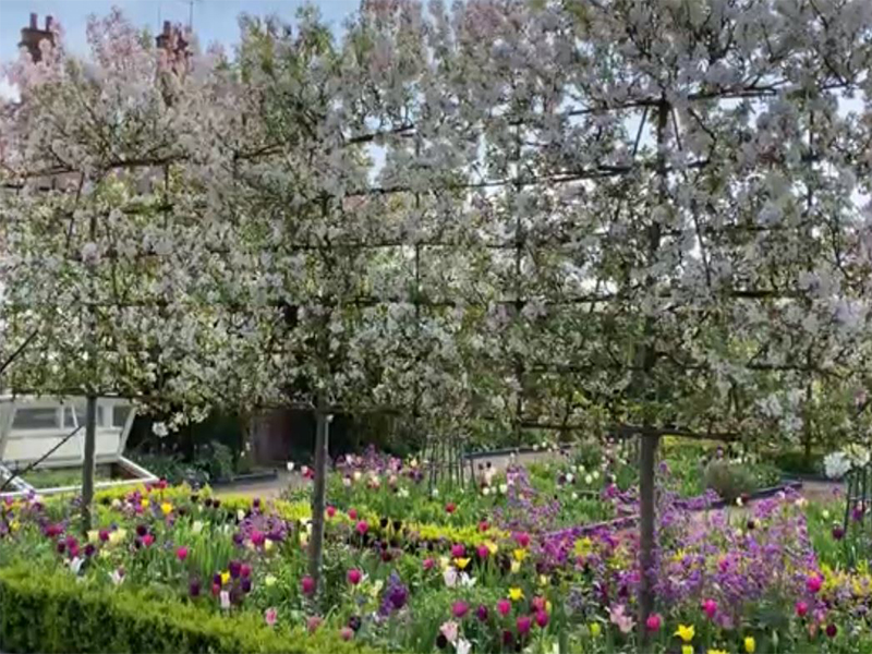 - Beautiful blossoms underplanted with box and tulips