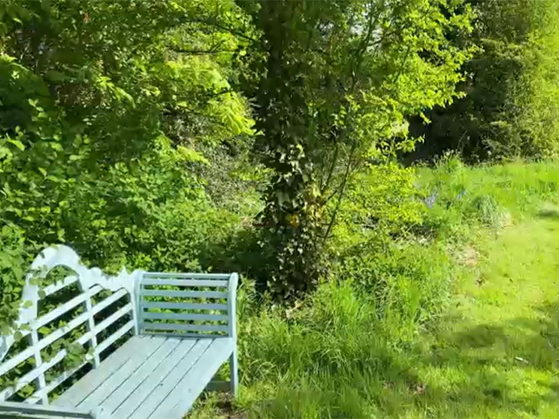 The garden’s wilder side is guarded by ‘Sid the stag’ who makes his home in the spring garden, while bluebell woods and a river, flanked by weeping willows skirt the front of the house.