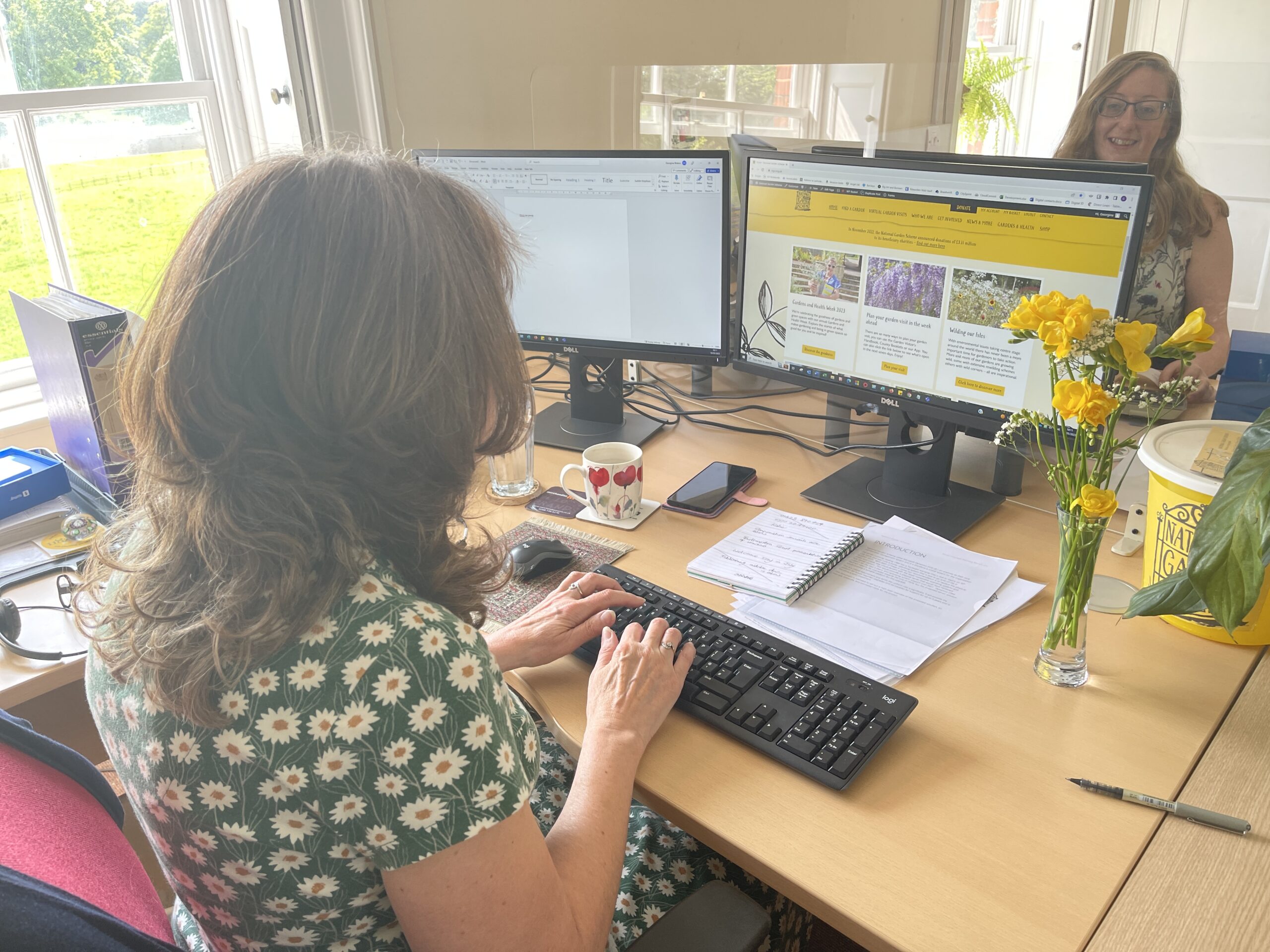 We hosted our first Floral Friday here at the National Garden Scheme office last week and it was a great success. Out came the flowery dresses and blouses, even our colleagues who usually stick to darker colours joined in with a subtle hair pin or flowery scarf! With lovely weather the team took a quick tea break in the garden for some photos and a chat about the day.