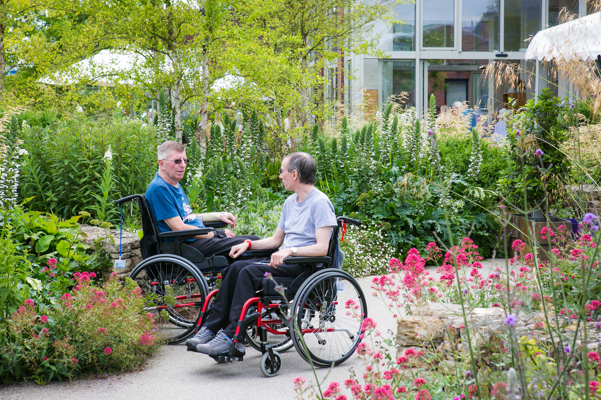 - Patients enjoying the garden at Horatio’s Salisbury © Josh Humphrey