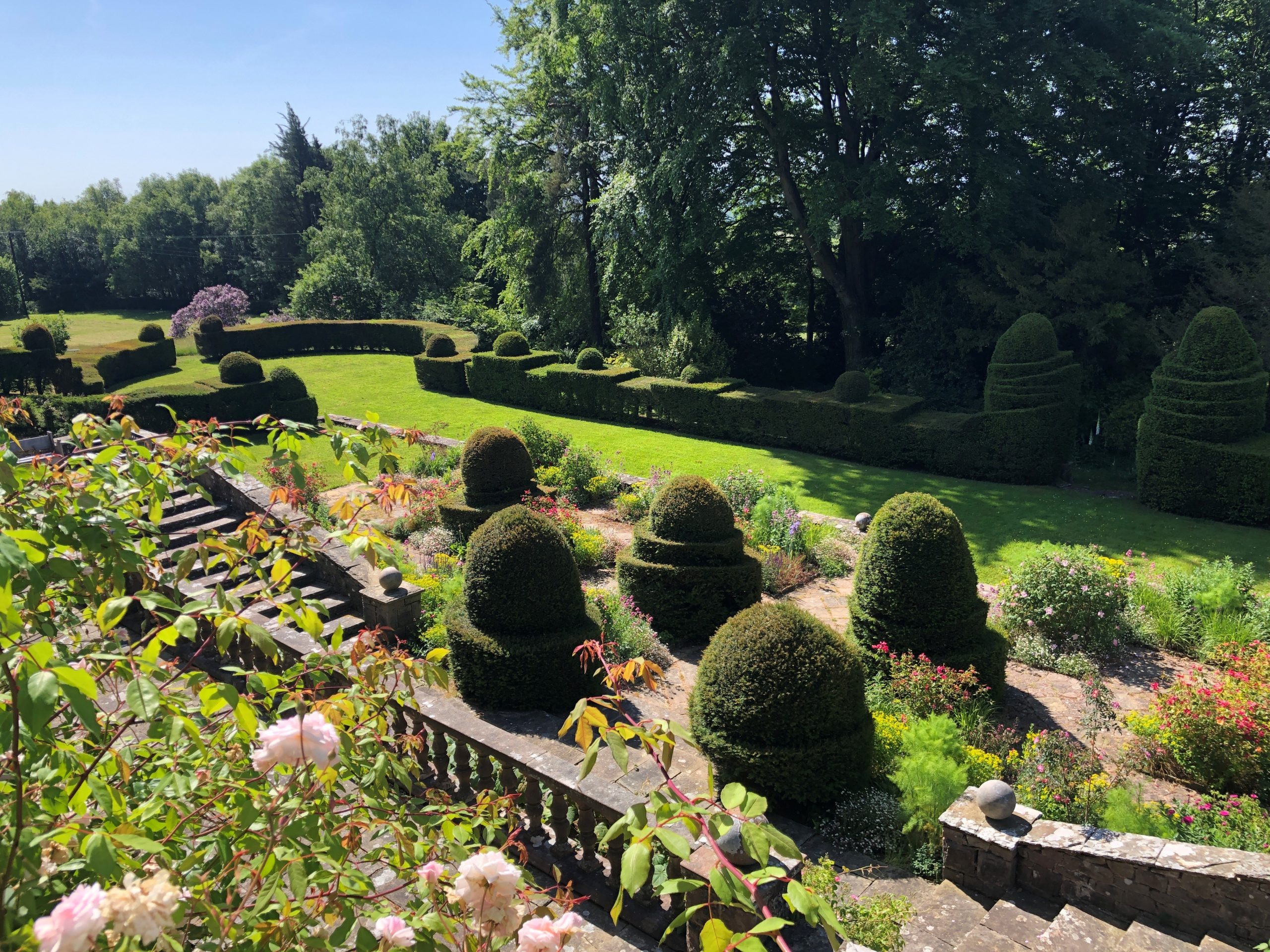 Wyndcliffe Court is a Grade II listed Arts and Crafts house just outside Chepstow in Monmouthshire designed by Sir Eric Francis and built for Charles Clay in 1922. Avray Tipping was involved with the garden design and landscaping, working in conjunction with the architect. Francis and Tipping were used to collaborating, for Francis was the architect of two of Tipping’s own houses. Wyndcliffe is described by Pevsner as ‘relaxed and sophisticated’ where house and garden sit perfectly together. The garden, with its characterful yew topiary, sun-warmed stone walls, formal terracing, ponds and bowling-green lawn have remained unchanged. This is a beautiful garden to be enjoyed.