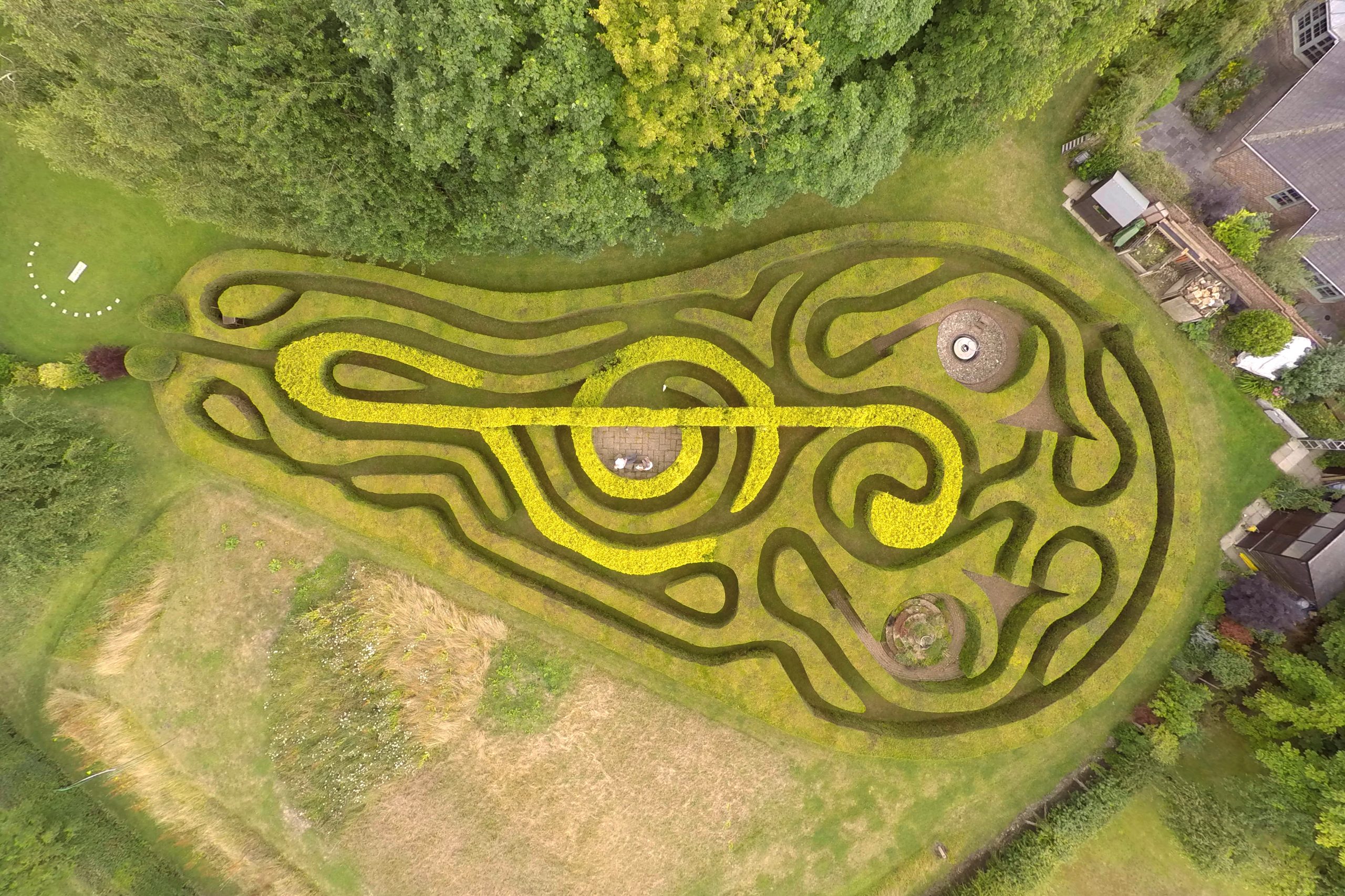 - Pictured from above, the Music Maze includes 1,500 yews, a fountain and an alpine garden